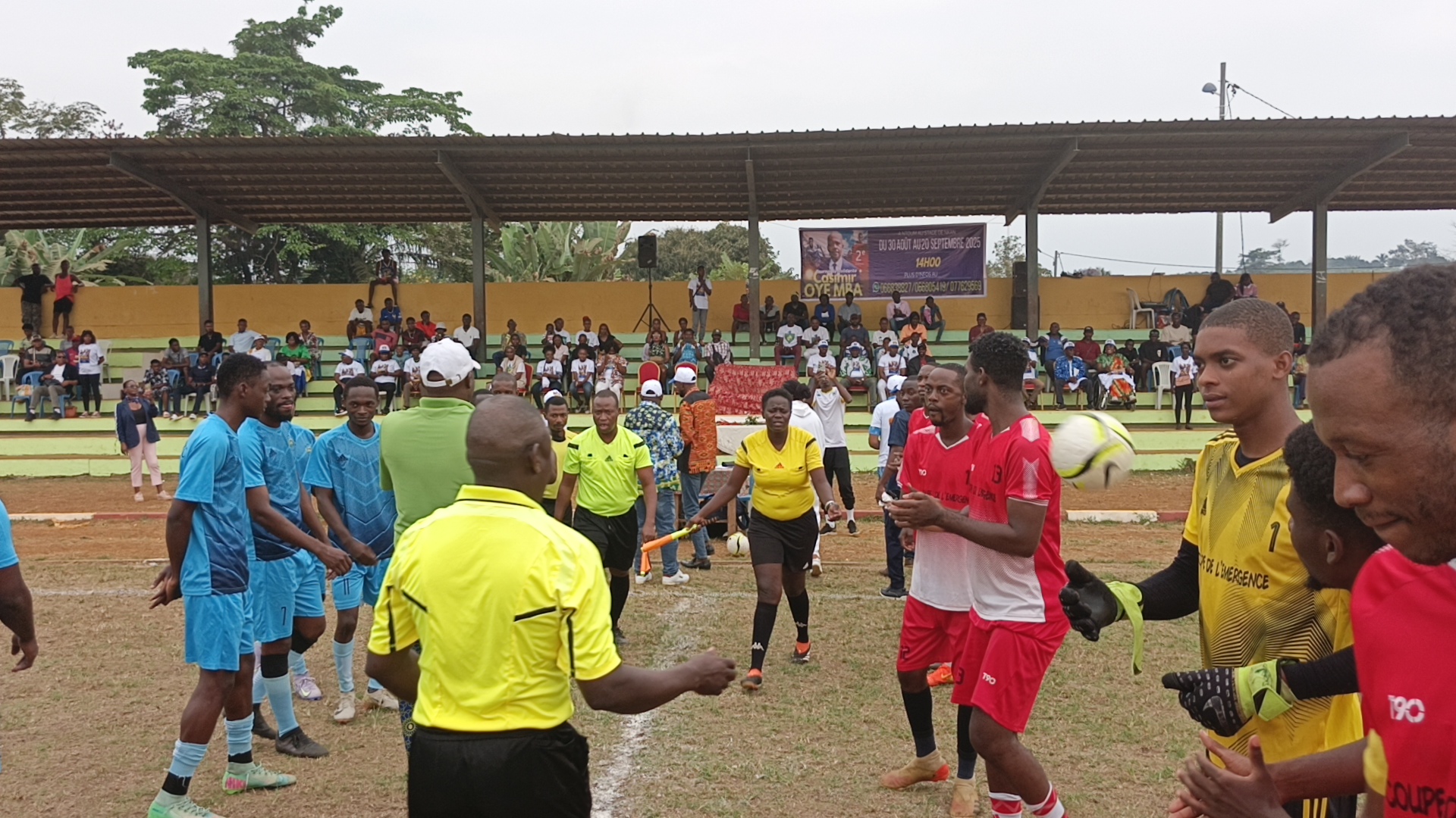 Ntoum, le 30 Août 2025. BWM- Le stade Knan fut le cadre où s'est tenu le lancement de la 2ème Édition de la coupe " Casimir Oye MBA. Le coup d'envoi a été tiré par monsieur Serge ANGO membre de l'Union Nationale.