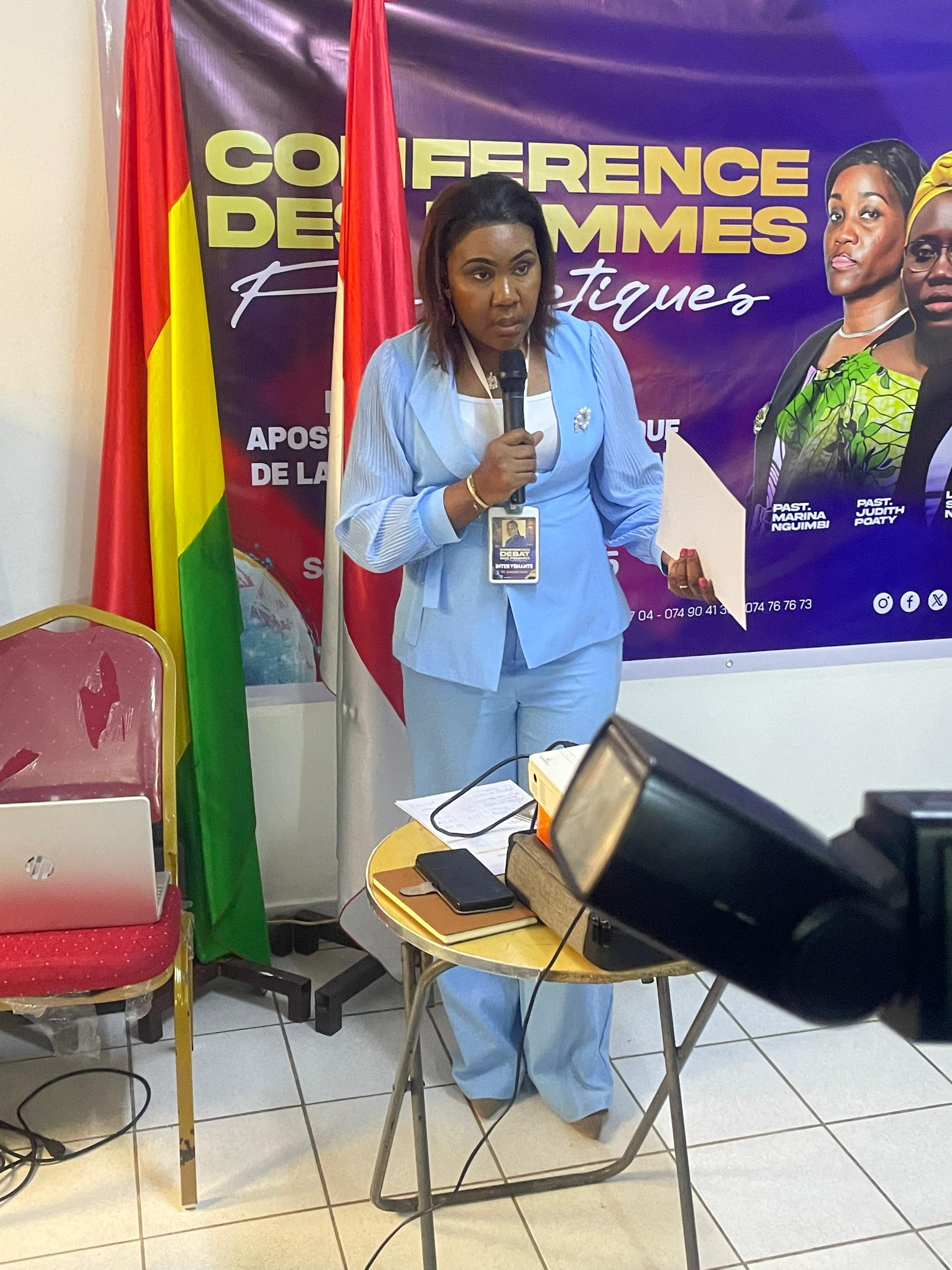 La première à ouvrir le feu fut Mme Lidwine Staelle NGOUNDJI, avec un discours politique sans huile ni encens superflu. Selon elle, une femme prophétique doit avoir accès aux ressources : santé, éducation, politique. Pas de ministère fort dans un corps faible, ni de vocation nationale sans stabilité personnelle.