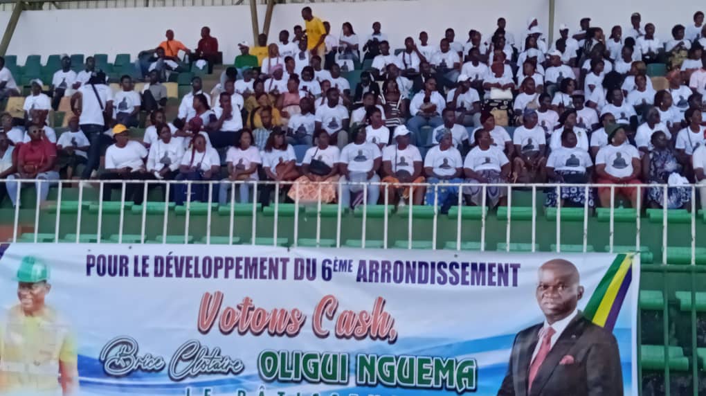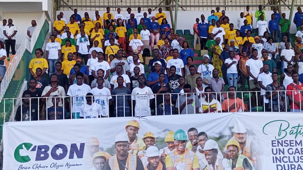 Libreville, le 09 avril 2025.BWM- le stade Monedan de Sibang a vibré au rythme d’un meeting de grande ampleur en faveur du candidat Brice Clotaire OLIGUI NGUEMA.Organisé sous la coordination de Julien-Florent ASSOUMOU AKUE, coordinateur général adjoint en charge des partis politiques et porte-parole du candidat, l’événement a mobilisé une foule venue témoigner son engagement pour une élection apaisée et participative.